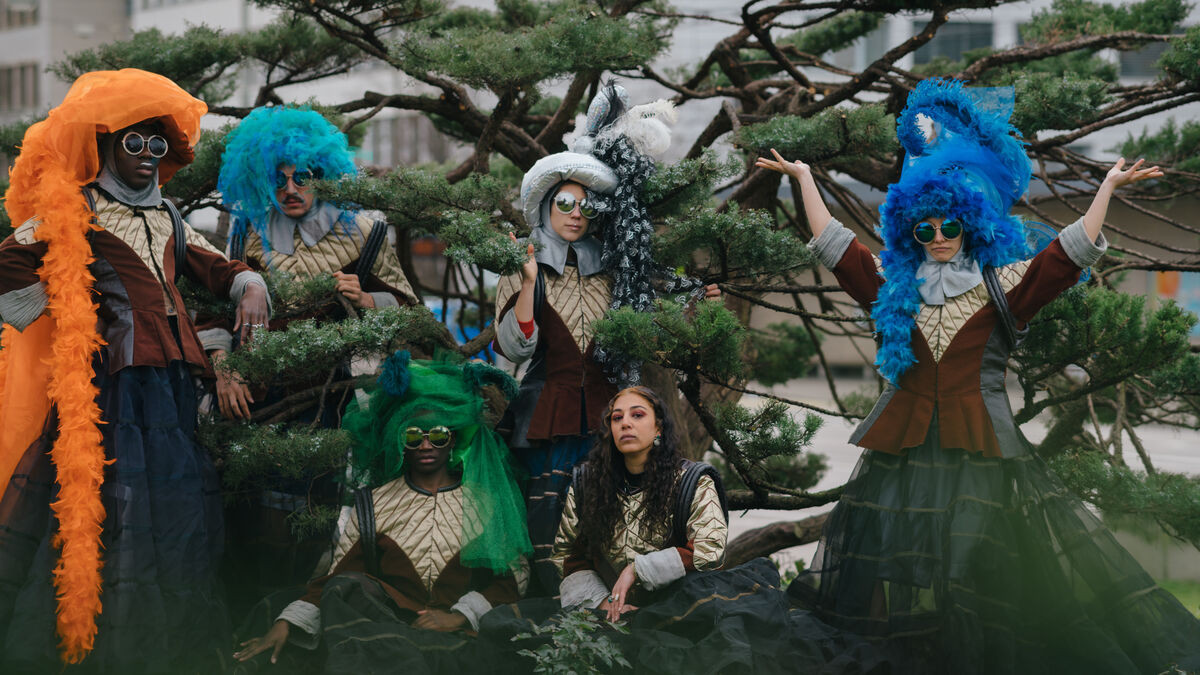 Das Kollektiv um Karine Dahouindji und Marius Barthaux entwickelt seit 2019 performative Formate zwischen Tanz, Ritual und Popkultur. Ihre Arbeiten sind roh, festlich und oft im öffentlichen Raum angesiedelt, geprägt von kollektiven und immersiven Prozessen.